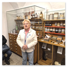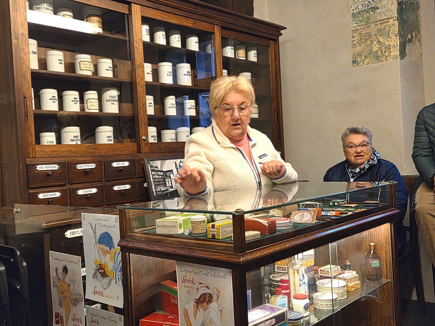Für diese besondere Führung konnten wir eine echte Koryphäe gewinnen: Helma Koch. In Sulzbach bekannt als Apothekerin, Autorin, Filmemacherin und versierte Museumsführerin, war sie die perfekte Besetzung für unsere Zeitreise. Da Frau Koch noch nach der alten Ausbildungsordnung Pharmazie studiert hat, beherrscht sie das Handwerk der „alten Schule“ aus dem Effeff.