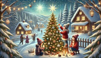 Der Stern erzählte ihr von einem kleinen Dorf unten im Tal. Dort lebte eine arme Familie, die sich keinen großen Baum leisten konnte. "Du kannst ihnen eine große Freude bereiten", sagte er.
