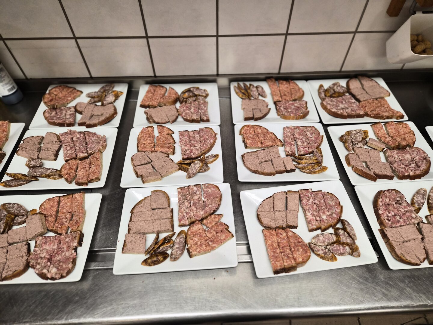 - Zünftige Proben: Hackbrot, Leberwurstbrot und „Bauernseuzer“ als Kostproben für die Gäste.
