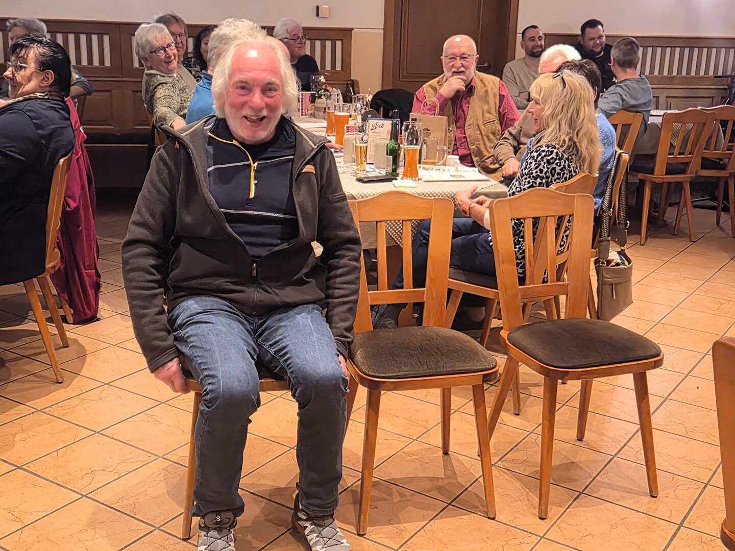 Zwischendurch sorgte Sepp Lösch mit Gedichten des ehemaligen Heimatpflegers „Binder Hansl“ (z.B. „Wurstsuppnfoahrn“) für Schmunzler, während Josef Schmaußer das Publikum mit interaktiven Spielen wie „Hanserl Hey“ bei bester Laune hielt.